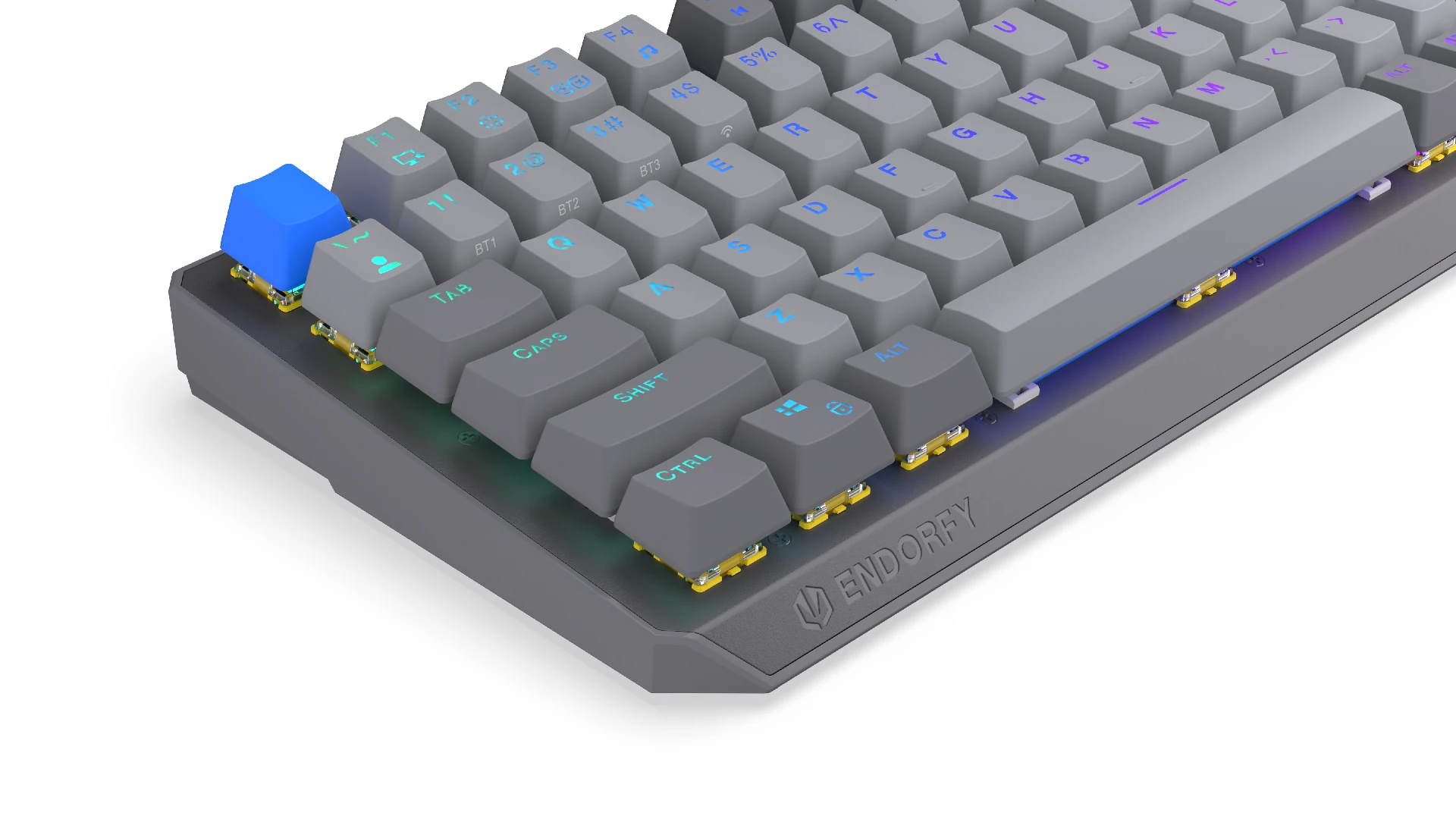 Das Tippgefühl ist der Bereich, in dem sich die Endorfy Thock V2 75 % Wireless am deutlichsten von vielen anderen Tastaturen unterscheidet. Die verbauten Endorfy Yellow Switches by Gateron sind linear und benötigen vergleichsweise wenig Kraft, um ausgelöst zu werden. Im direkten Vergleich zu Tastaturen wie einem MacBook, einer Razer BlackWidow Ultimate Stealth oder auch der Cherry MX 8.2 TKL Wireless fällt sofort auf, dass der Widerstand deutlich geringer ist. Gerade in den ersten Stunden kann das ungewohnt sein. Die Finger lösen schneller Tasten aus, als man es vielleicht erwartet, wodurch es häufiger zu versehentlichen Eingaben kommen kann. Dieses Verhalten legt sich jedoch mit etwas Eingewöhnung. Hat man sich daran angepasst, zeigt die Tastatur ihre eigentliche Stärke. Das Tippgefühl ist weich, flüssig und sehr direkt. Eingaben gehen leicht von der Hand und fühlen sich angenehm schnell an, ohne dabei an Kontrolle zu verlieren. Auch akustisch hinterlässt die Tastatur einen guten Eindruck. Der Klang ist eher dumpf und zurückhaltend, was gerade bei längeren Sessions angenehm ist. Sie wirkt deutlich weniger aufdringlich als viele klassische Gaming-Tastaturen mit stärkerem Klick- oder Klack-Geräusch.
