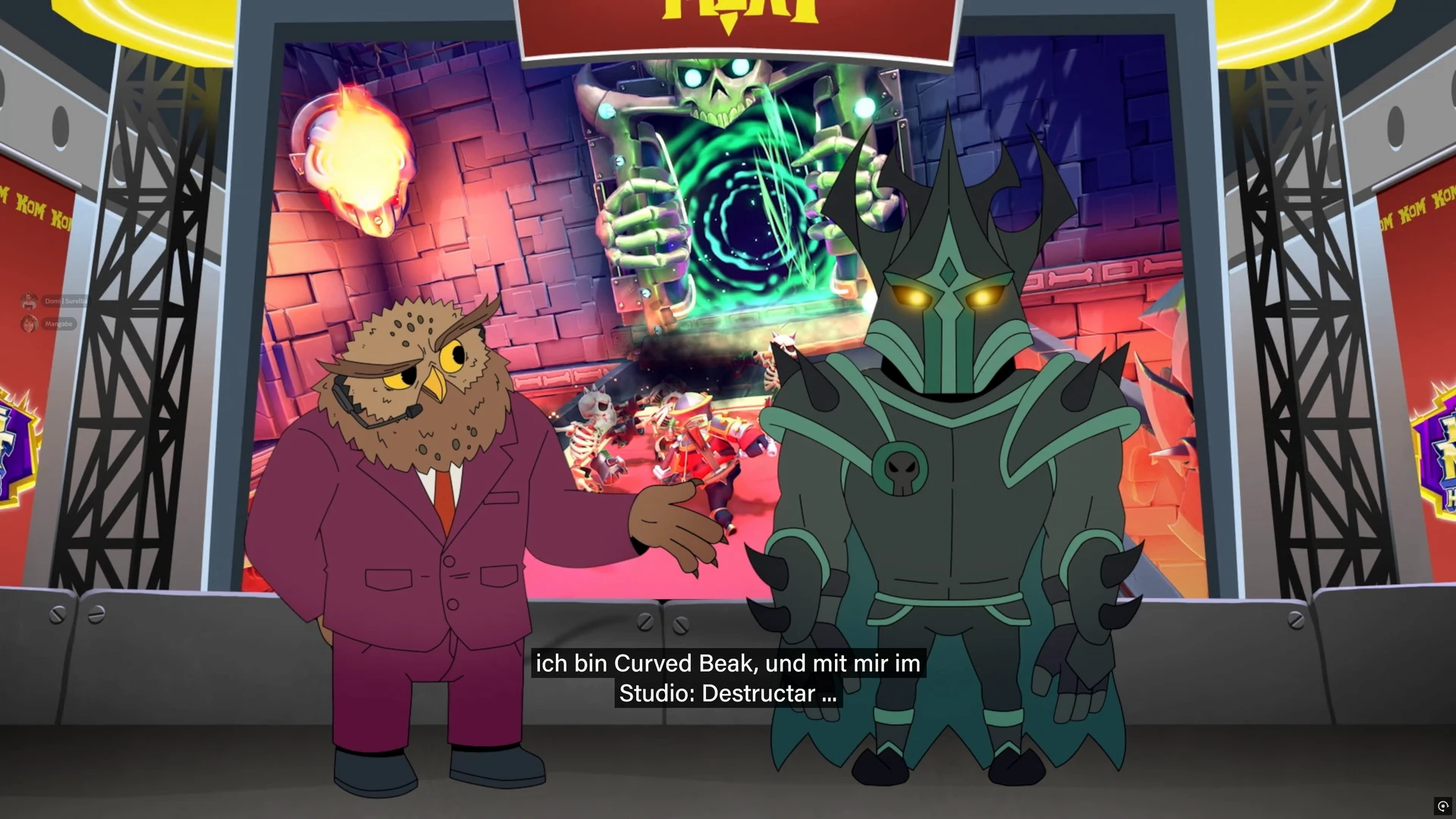 Schon beim ersten Betreten der Welt wird klar: King of Meat ist keine gewöhnliche Fantasy-Geschichte. Statt Burgen und Königen erwartet uns Loregok, ein Land voller absurder Kreaturen, bizarrer Arenen und überdrehter TV-Momente. Drachen und Skelette leben hier friedlich neben schwebenden Kameradrohnen, Scheinwerfern und riesigen Studiorequisiten.
