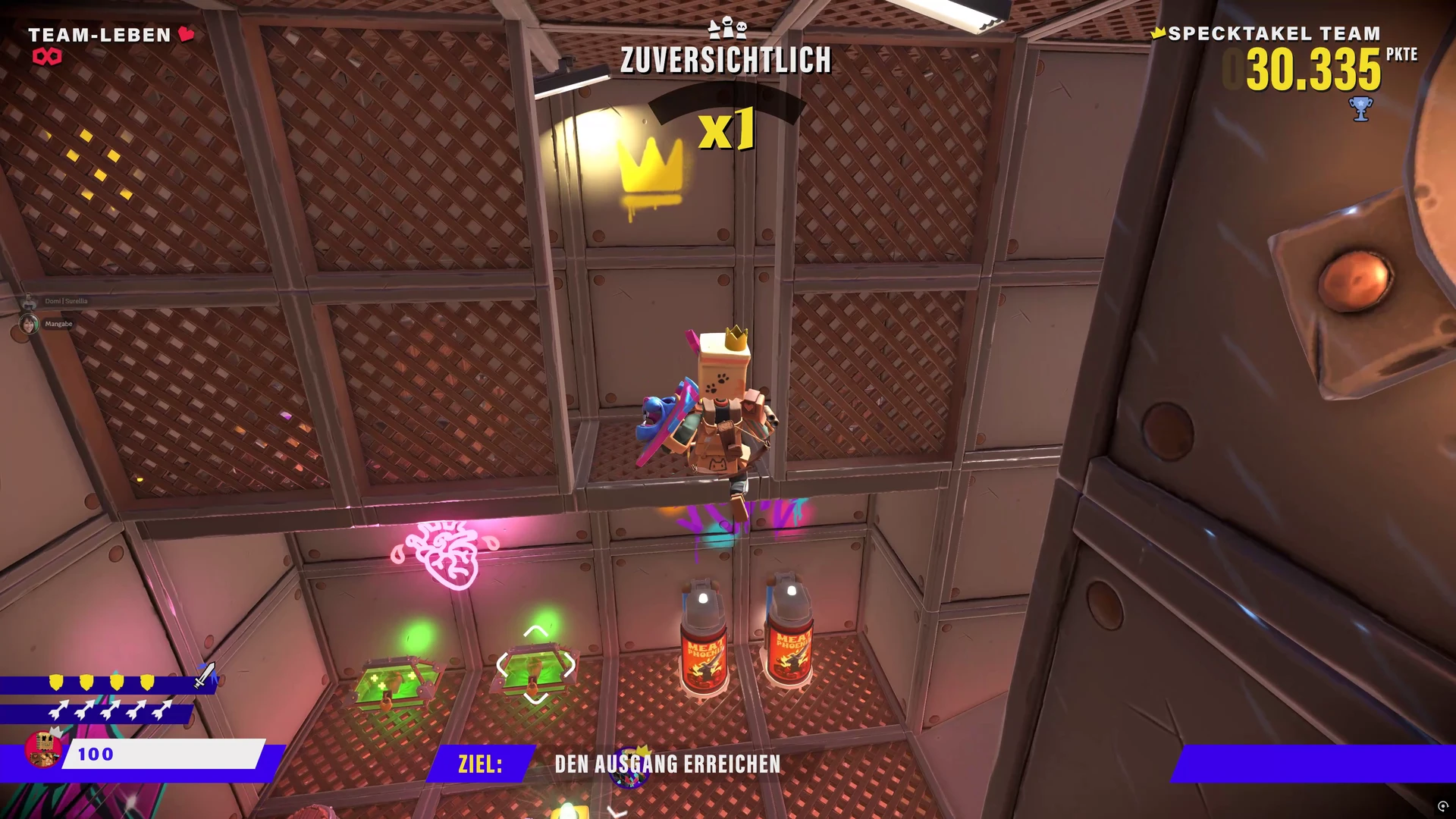 Natürlich ist nicht alles perfekt. Neben dem etwas ungenauen Springen gibt es auch Momente, in denen die Kamera nicht optimal reagiert, besonders bei vertikalen Leveln. Manchmal verliert man kurz den Überblick, wenn Explosionen oder Partikeleffekte den Bildschirm füllen.