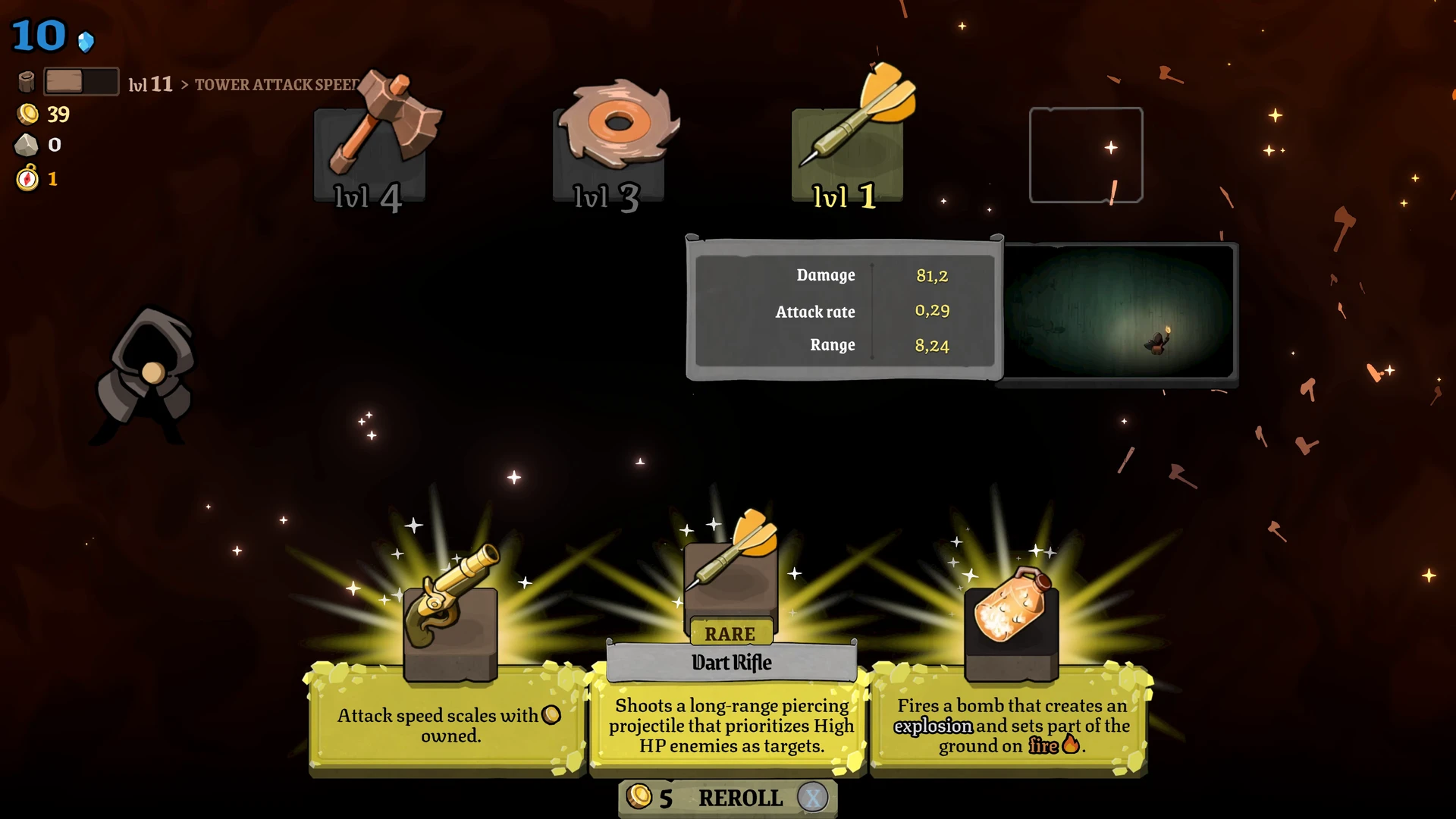 Im Hintergrund schalten wir neue Türme, Modifikationen und Waffen frei. Die Progression ist überschaubar, aber sinnvoll und steigert mit jedem Run die taktischen Optionen. Da die einzelnen Durchläufe kompakt sind und der Wiedereinstieg schnell erfolgt, bleibt der Spielfluss erhalten.