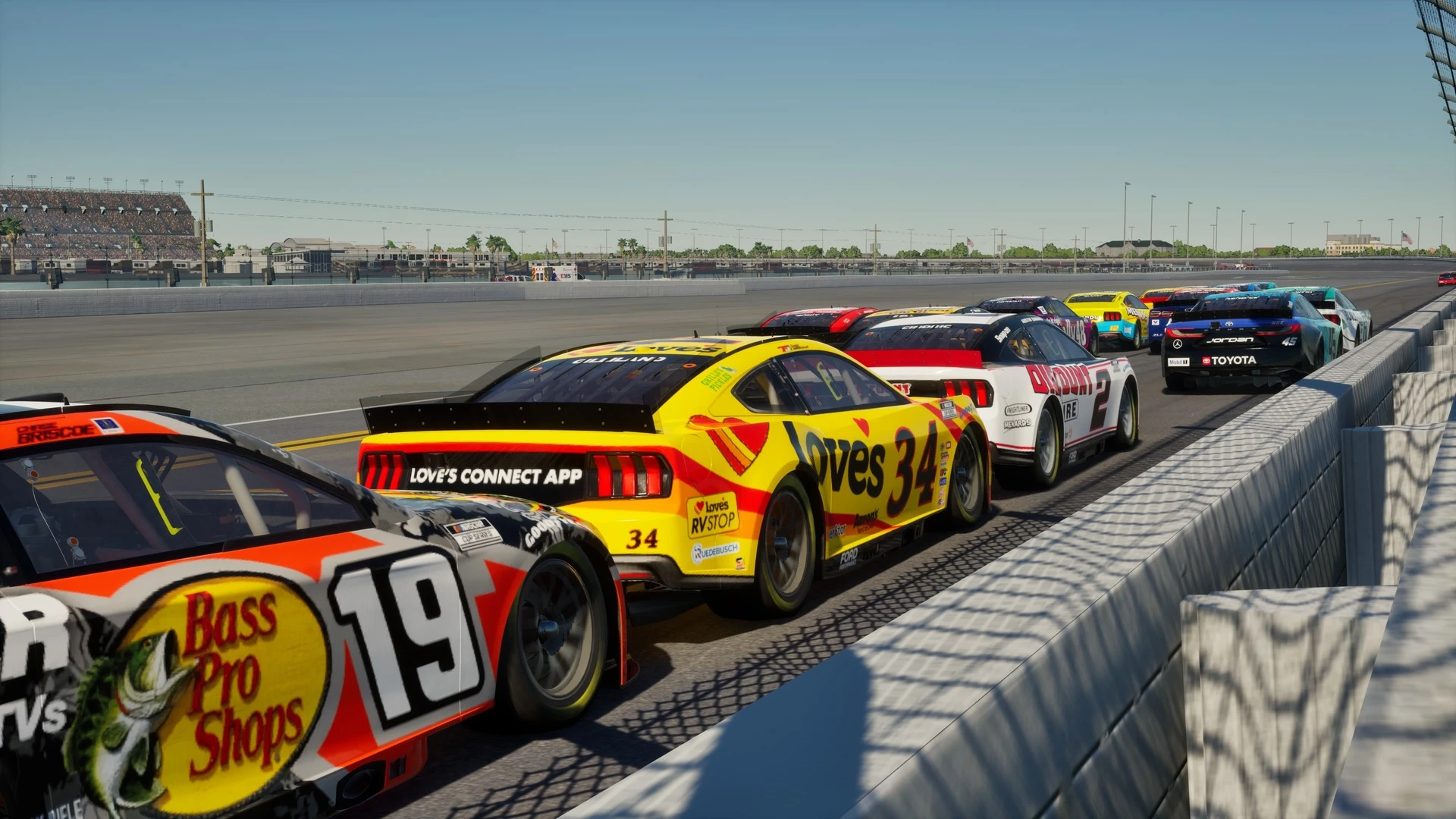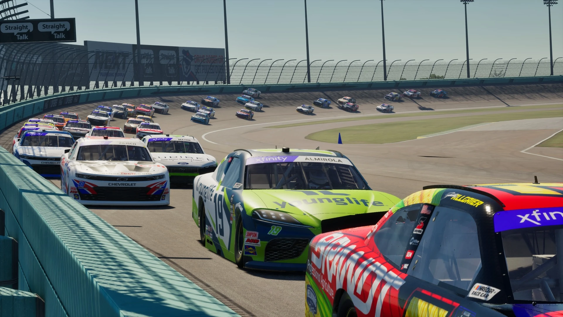 NASCAR 25 bietet die offizielle Lizenz der aktuellen NASCAR-Saison, der höchsten Rennklasse im US-amerikanischen Motorsport. Diese erstreckt sich über Fahrer wie etwa die Serienstars Joey Logano, Ryan Blaney, Denny Hamlin oder den für seinen legendären Wallride mittlerweile berüchtigten Ross Chastain, die allesamt ähnlich eines EA-Sports-FC-Titels ein eigenes Rating erhalten haben. Bei den Fahrzeugen finden wir die drei bekannten Hersteller Chevrolet, Ford und Toyota wieder, die ihre Logos auf die Stockcars drucken, sowie die aktuellsten Lackierungen inklusive vieler Sponsoren.