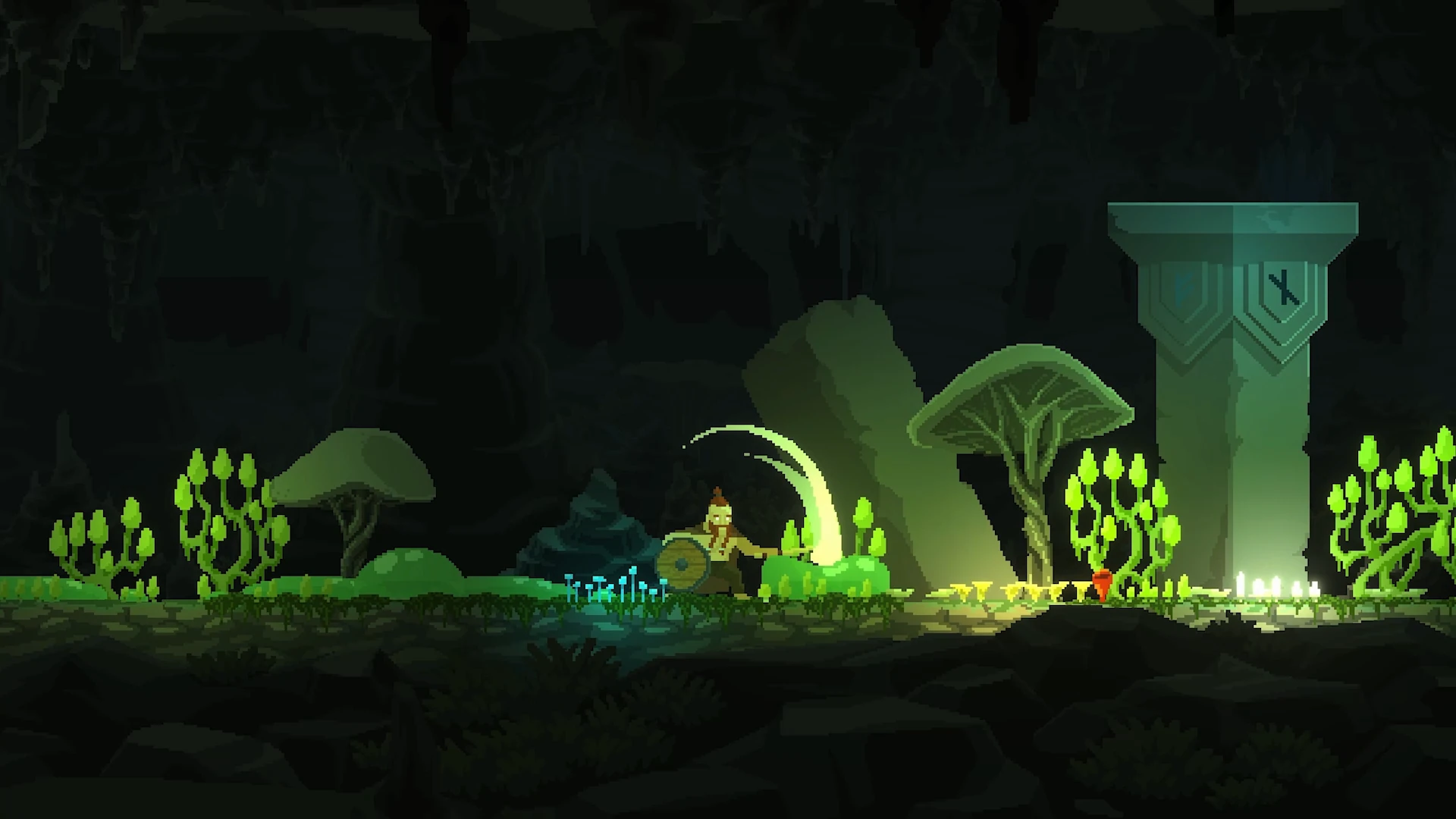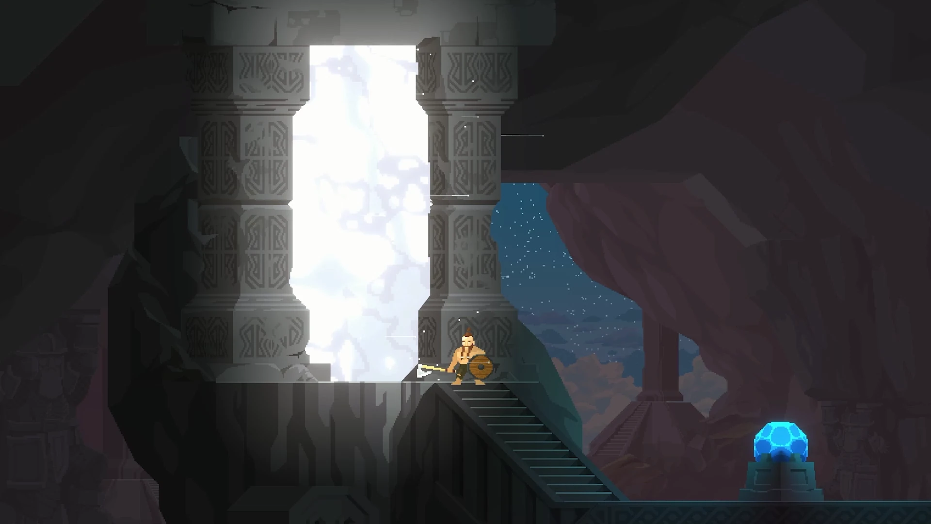 Bei der Optik bleibt Regions of Ruin: Runegate angenehm konsequent: Pixel-Art, sauber animiert, mit genug Liebe zum Detail, dass man auch nach Stunden noch gerne hinschaut. Die Regionen heben sich farblich und atmosphärisch klar voneinander ab, kleine Details wie Wettereffekte, leuchtende Kristallhöhlen oder funkende Schmelzen verleihen den Schauplätzen Charakter, ohne in Reizüberflutung zu kippen. Es ist nichts, was Pixel-Art neu definiert – aber es ist genau das richtige Maß zwischen klassisch und stilbewusst.