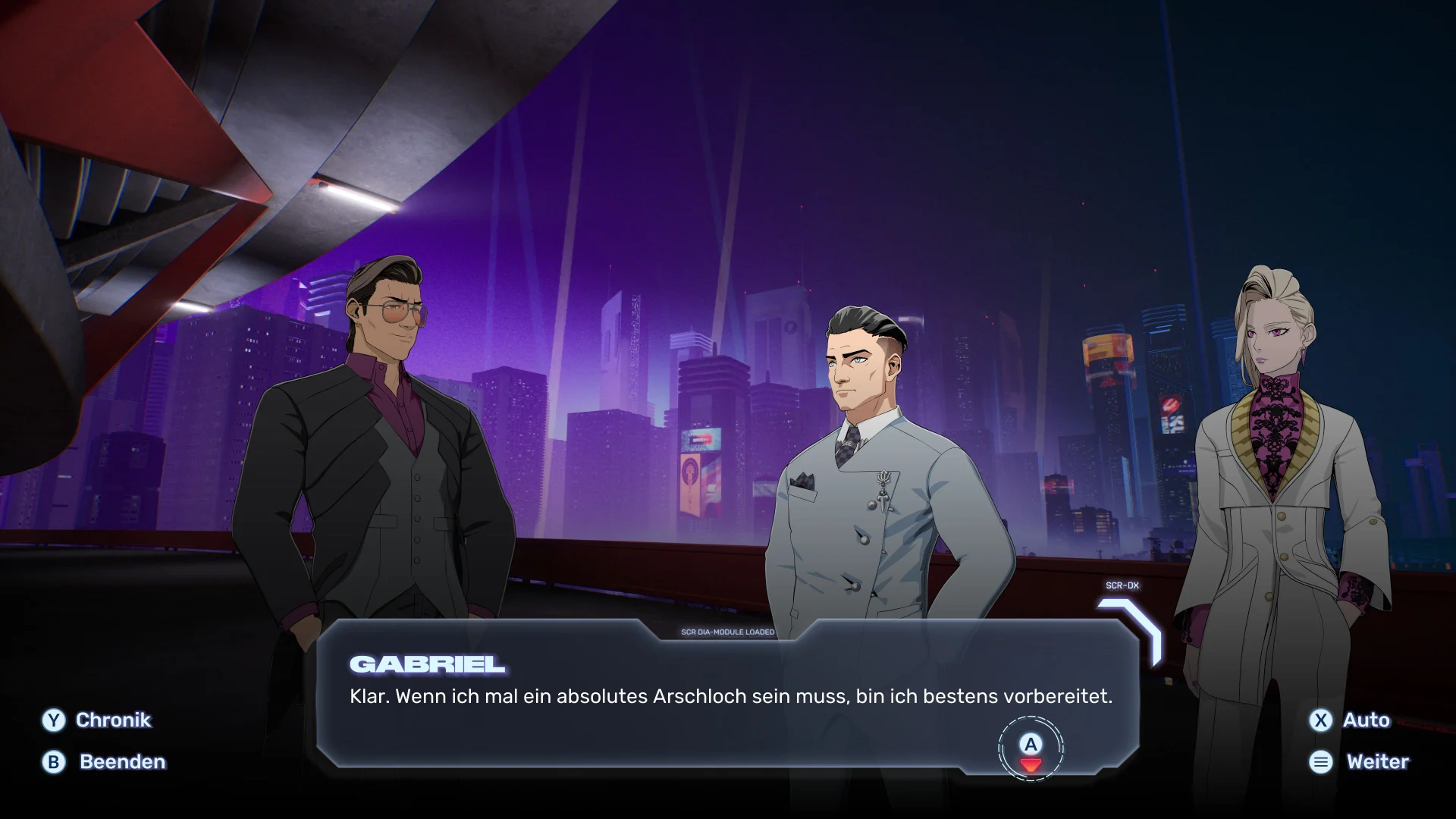 Ergänzt wird die Präsentation noch durch zahlreiche, sehr ansprechend gestaltete Zwischensequenzen. So lernen wir nach und nach die einzelnen Charaktere kennen, verstehen ihre Motivationen und Probleme und begleiten sie auf ihrem Weg durch das Turnier. Während einem etwa die dauerfluchende Róisín oder der stets in sich selbst ruhende Burger-Freund Frederic recht schnell ans Herz wachsen, streiten sich Dirk von Anaconda Corp und Kagawa-Kais Keiji um den Titel des größten Unsympathen im Spiel.
