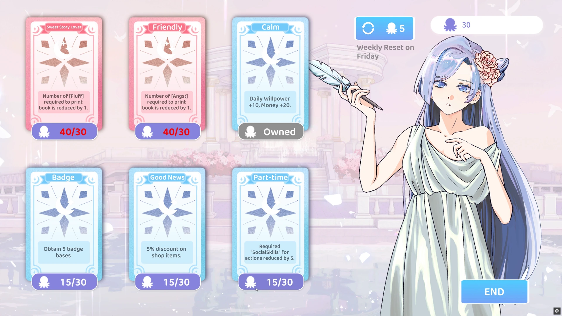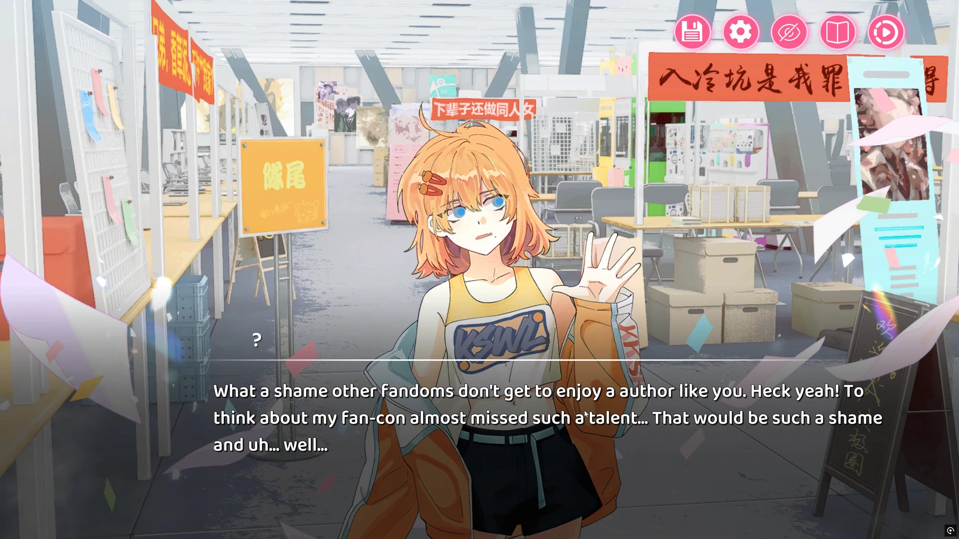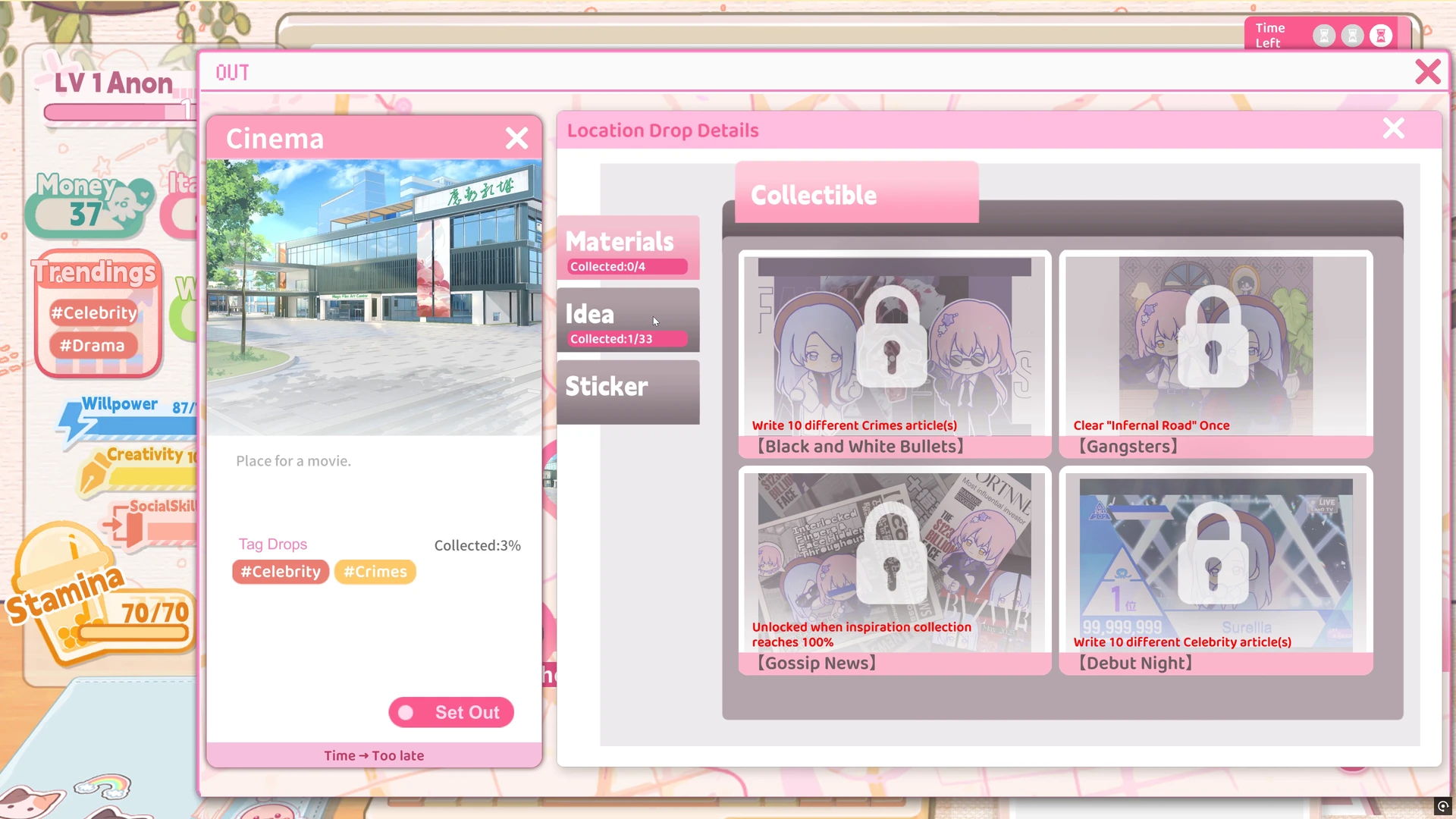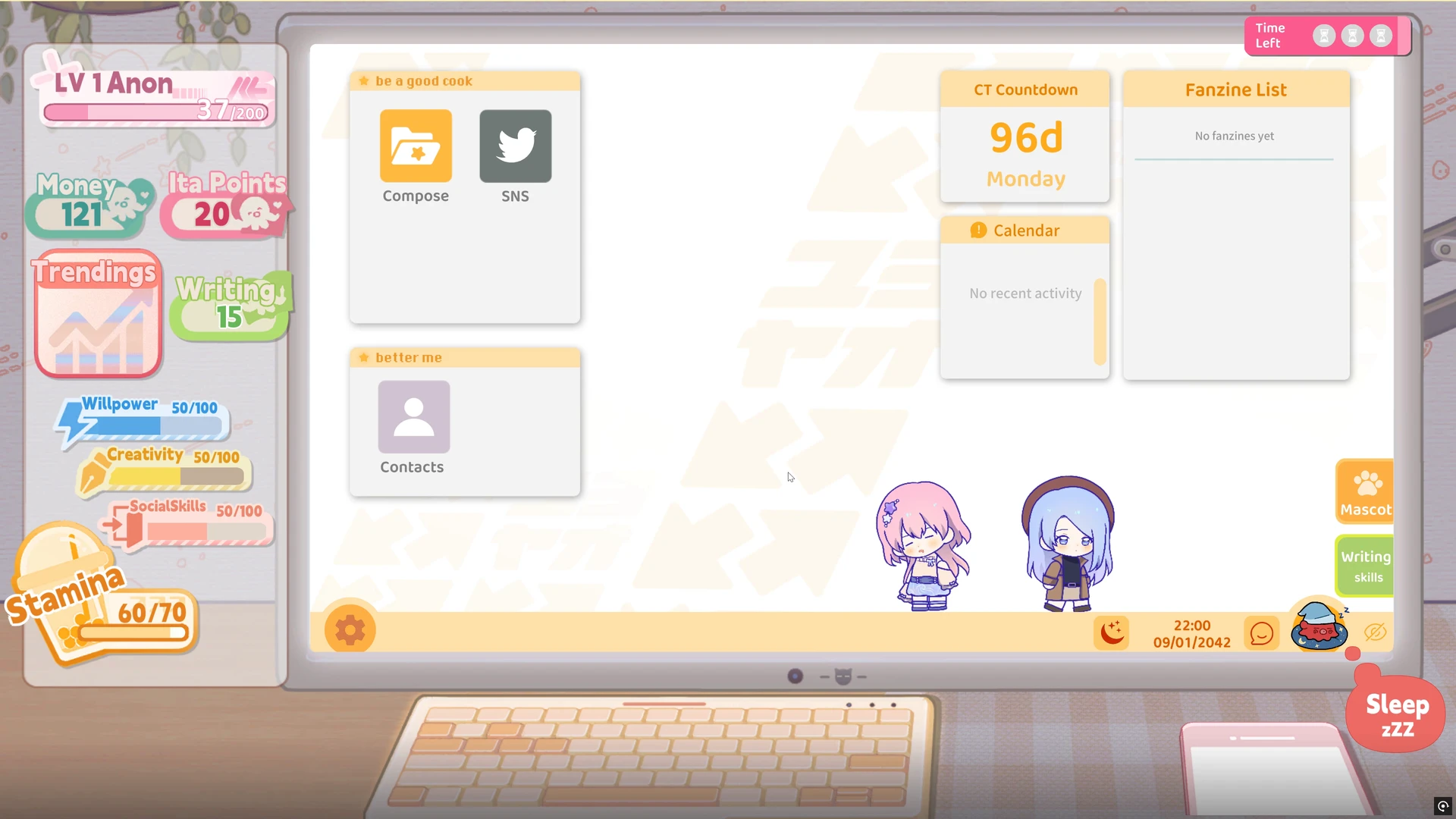 Offiziell nennt sich das Ganze „Fandom-Business-Simulation“, praktisch ist es ein Mix aus Visual Novel, Lebensverwaltung und leichtem Management. Unsere Protagonistin (festgelegt, aber visuell anpassbar) arbeitet tagsüber an Inspiration, erledigt Nebenjobs, trifft Mitfans – abends stellt sie aus Genre-Tags und gesammelten Ideen ihre Geschichten zusammen und veröffentlicht sie als Fanzines. Das Schreiben ist dabei weniger Tastaturakrobatik, mehr kuratierte Komposition – ein System, das die Fantasie befeuert, ohne uns mit Texteditoren zu erschlagen. Dabei überwiegt klar der Visual-Novel-Anteil, während die Management-Elemente für Abwechslung und Spieltiefe sorgen.