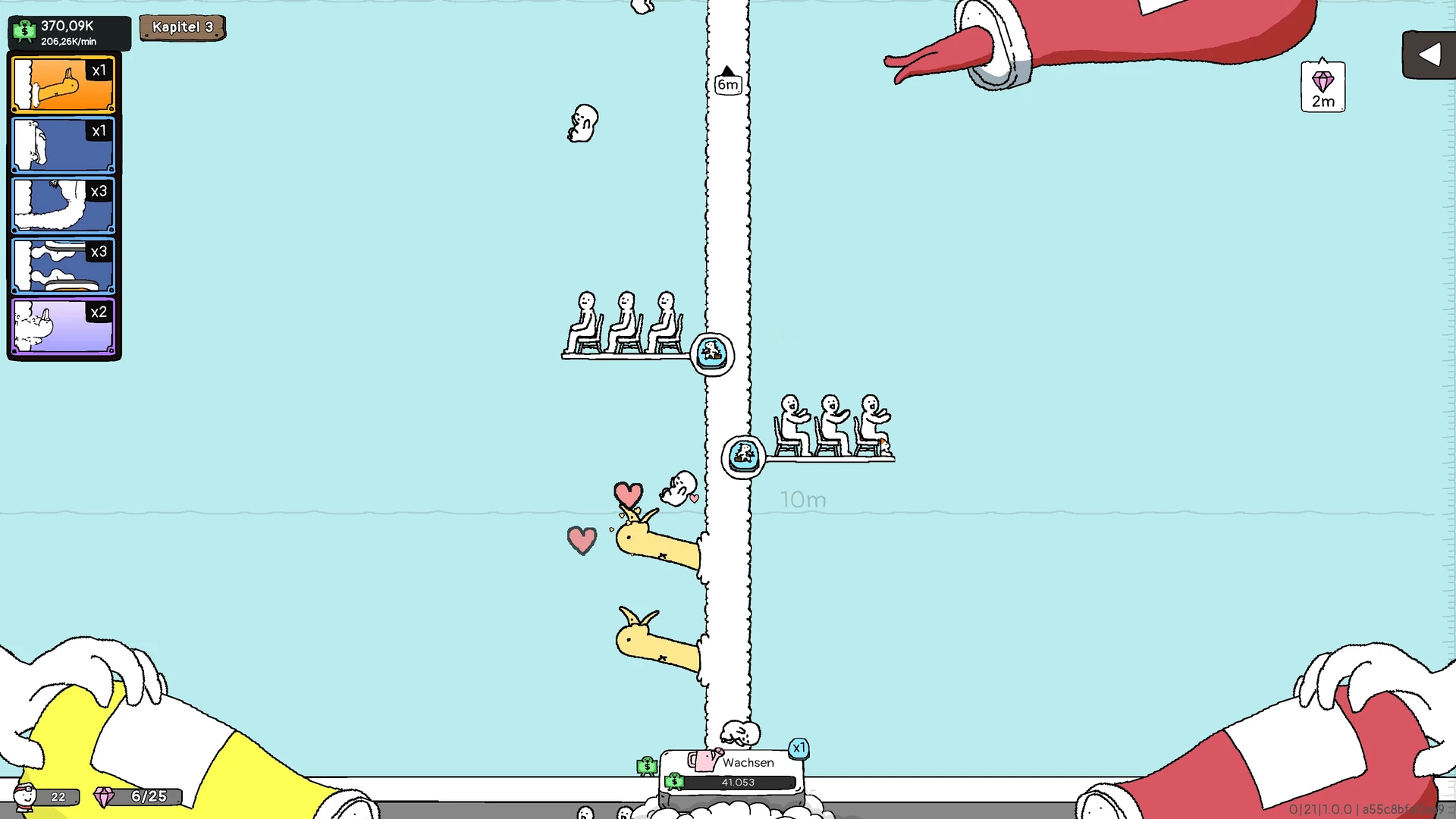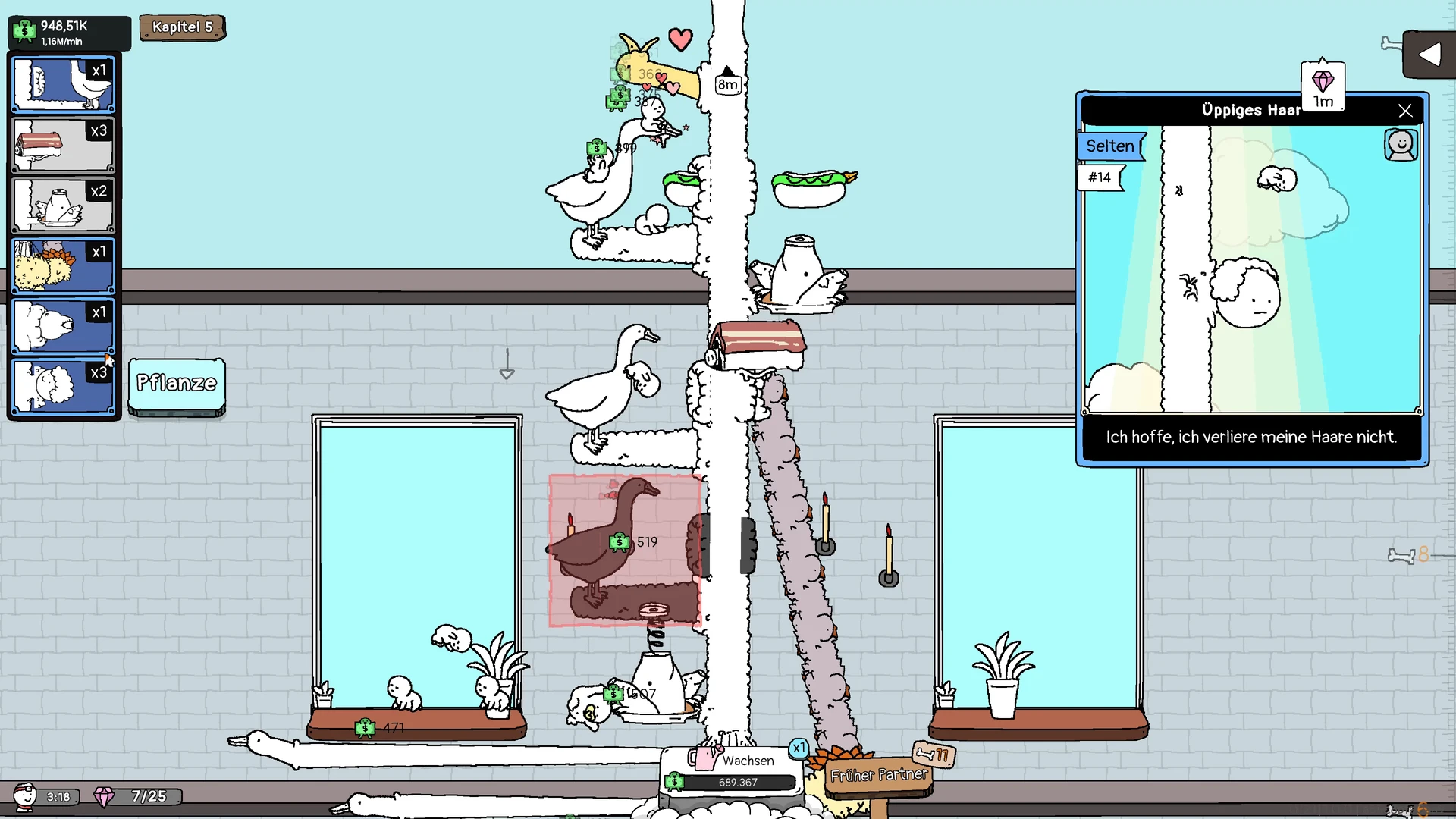 Mit zunehmender Spieldauer zeigt Tingus Goose seine typische Idle Seite. Die Anforderungen steigen, der Weg zum nächsten großen Upgrade wird länger und der Fortschritt fühlt sich streckenweise zäher an. Was zu Beginn mit schnellen Erfolgserlebnissen lockt, verschiebt sich mehr in Richtung Langzeitplanung. Wer in den späteren Kapiteln effizient sein will, legt den Schwerpunkt auf präzises Layouten und bewusste Synergien.