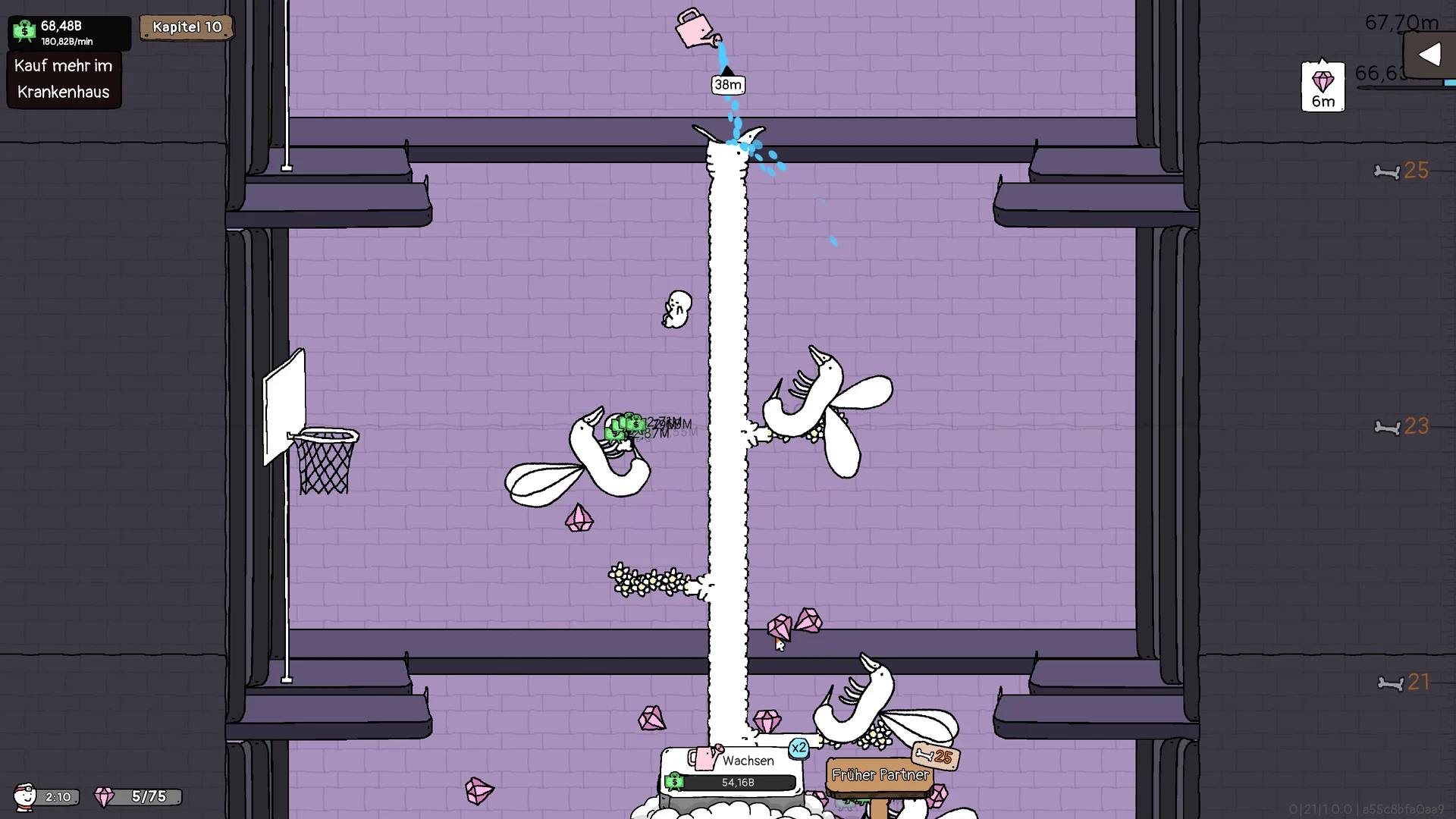 Die Atmosphäre ist ein Mix aus Körperhorror, überzeichneter Skizzenoptik und dem Gefühl, als hätte jemand eine Sammlung merkwürdiger Ideen unkontrolliert auf den Bildschirm entlassen. Heraus kommt ein Spiel, das irritiert, amüsiert und gleichzeitig mit einer fast schon eigenwilligen Konsequenz seine Vision verfolgt. Die Gans wächst stetig. Äste schieben sich in die Höhe. Babys kullern durch das Bild, als sei das ein völlig natürlicher Teil des Lebens.